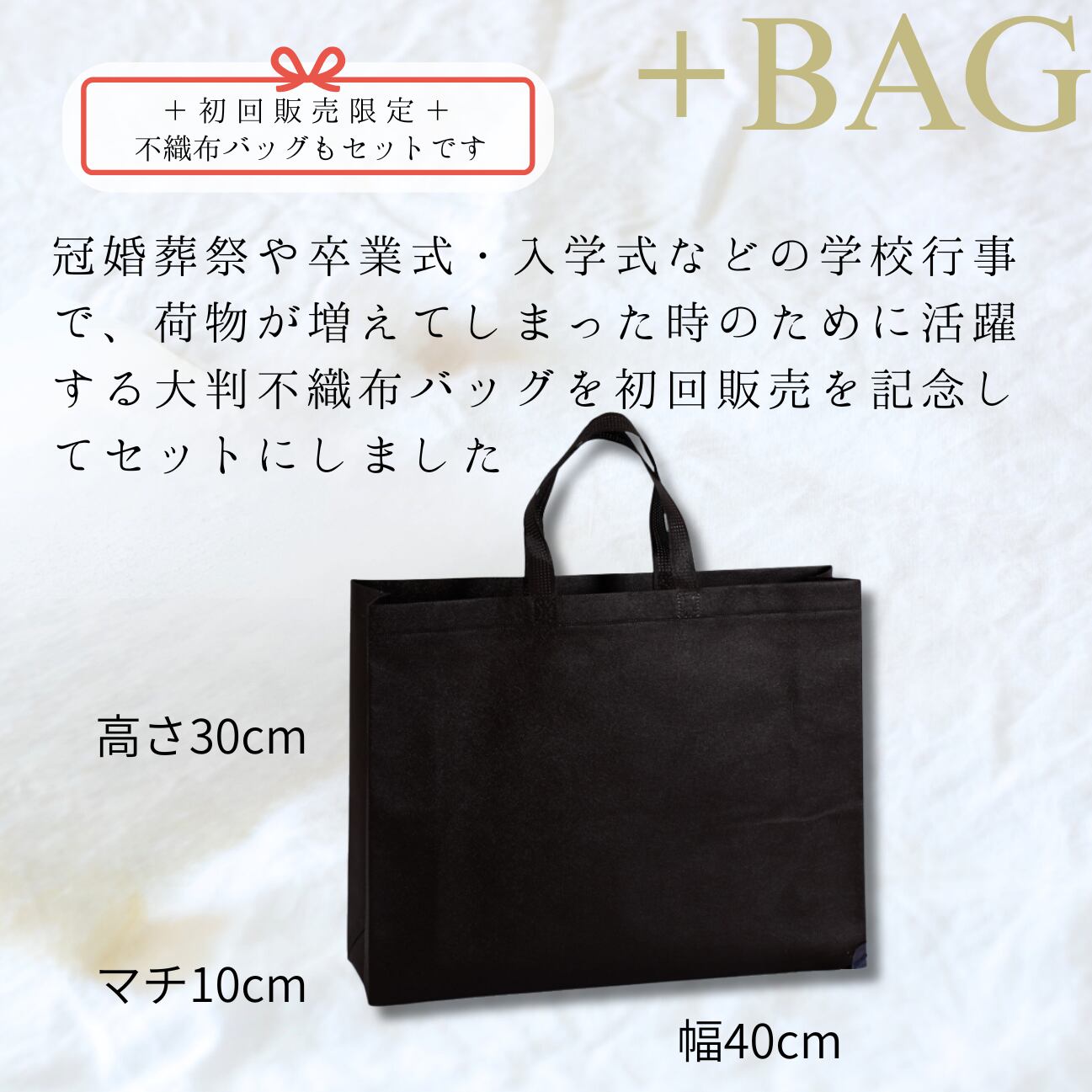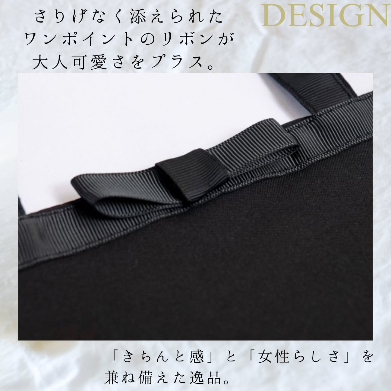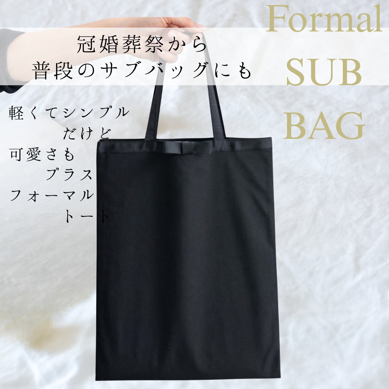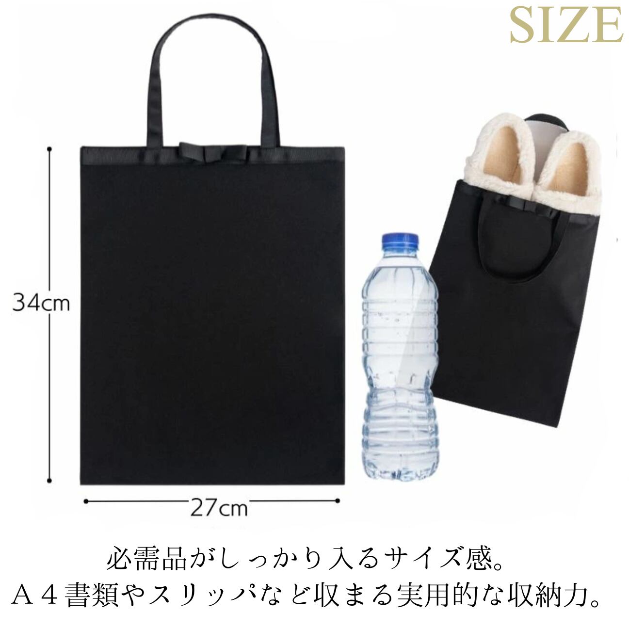 【上品なリボンデザイン】 控えめな光沢感とフロントのリボンが、さりげなく女性らしさを引き立てます。冠婚葬祭や学校行事など、きちんと感が求められる場にぴったりのデザインです。 【A4書類がすっきり収まるサイズ感】 縦34cm×横27cmで、書類・スリッパ・袱紗・ハンカチなどの必需品をまとめて持ち運べる便利なサブバッグ。バッグインバッグとしても◎ 【薄型&マチなしでスマートに】 マチのないスリムな形状で、使わない時は折りたたんで収納OK。サブバッグとして荷物を増やしたくないシーンにも最適です。 【フォーマルシーンに幅広く対応】 お受験・卒園式・入学式・お通夜・告別式など、どんなフォーマルシーンでも浮かないベーシックなブラックカラーとデザイン。 ------------------------- 素材:ポリエステル サイズ: 縦34cm×横27cm 持ち手高さ14cm -------------------------