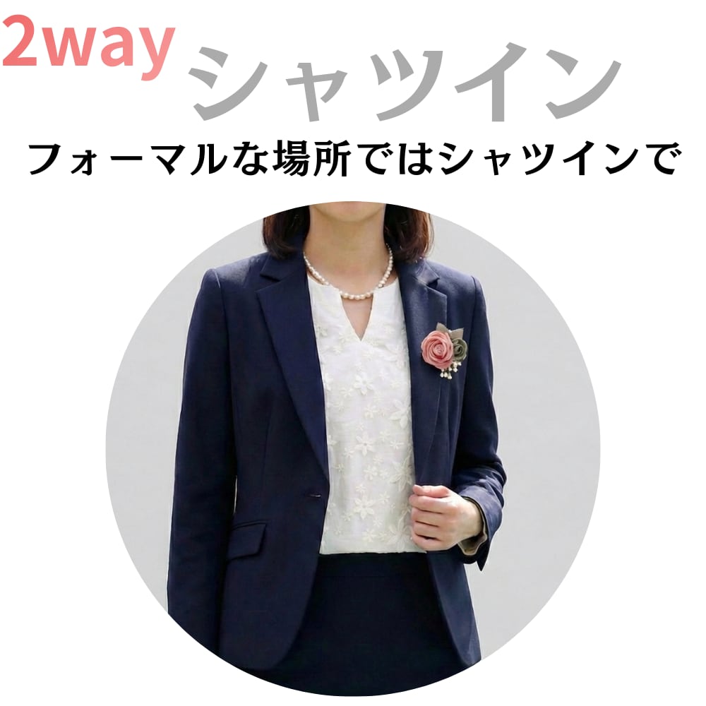 これからの季節、卒業式(卒園式)や入学式(入園式)のスーツスタイルに悩むママは多いはず。このシャツは、ノーカラージャケットやテーラードジャケットのVゾーンから、美しい花柄の刺繍がのぞく絶妙なデザイン。 シンプルな無地のスーツに合わせるだけで、一気に華やかで高見えするコーディネートが完成します。コサージュやパールネックレスとの相性も抜群で、記念撮影でも写真映えすること間違いなしです。