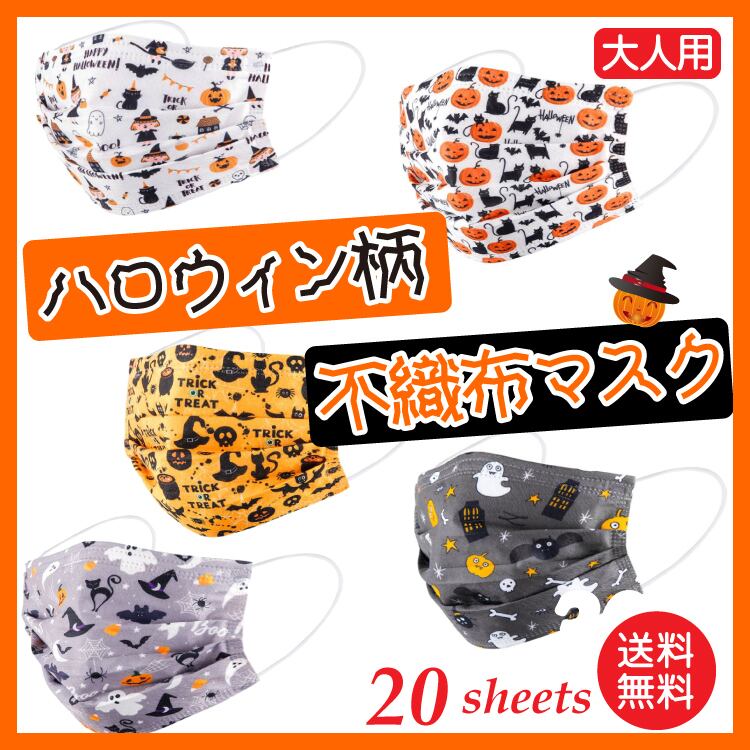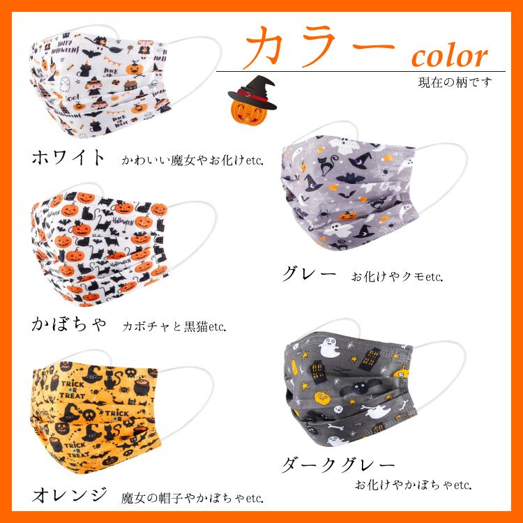 【20枚入】ハロウィン カボチャ お化け 不織布 カラー マスク 使い捨て 大人用 三層構造 Halloween